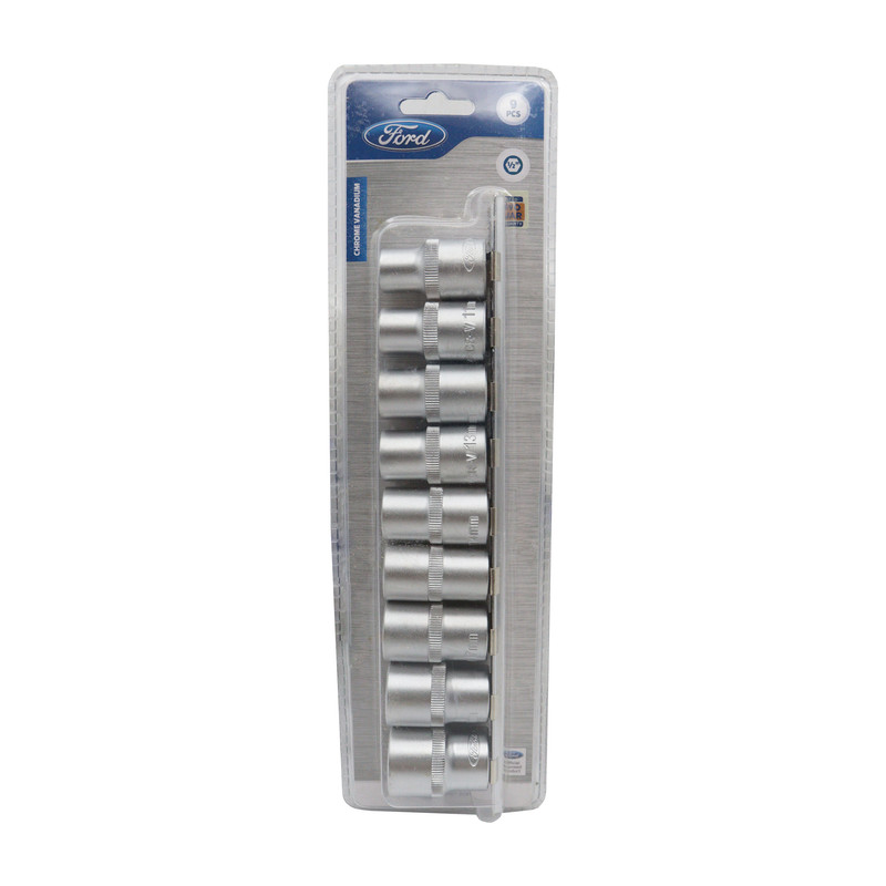 - سری بکس کوتاه فورد مجموعه 9 عددی - 9 عدد سری بکس کوتاه در سایز های :10 - 11 - 12 - 13 - 14 - 15 - 17 - 19 - 22 میلی متر - درایو 1/2 اینچ - نوع سری : شش پر - جنس کروم وانادیوم