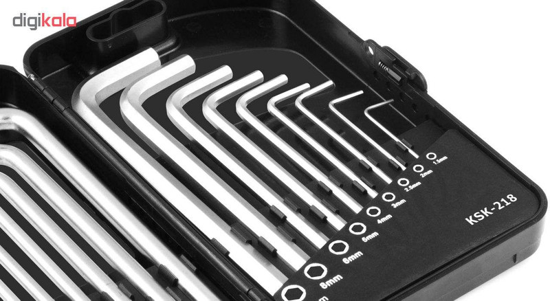 تعداد18 عددشماره آچار5 , 1.5 , 2 , 2.5 , 3 , 4 , 6 , 8 , 10توضیحات زاویه90 درجهتوضیحات کاورپی وی سی قفل شوندهجنس کالافولاد با تکنولوژی دراپ فورجوزن560 گرم