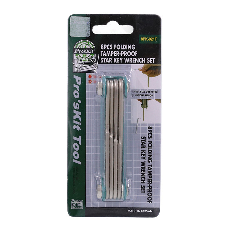 دستهبندی: آچارتعداد: 8 عددجنس کالا: فلزسایر توضیحات: T5 T6 T7 T8 T9H سوراخ دار T10H سوراخ دار T15H سوراخ دار T20H سوراخ داروزن: 120 گرم