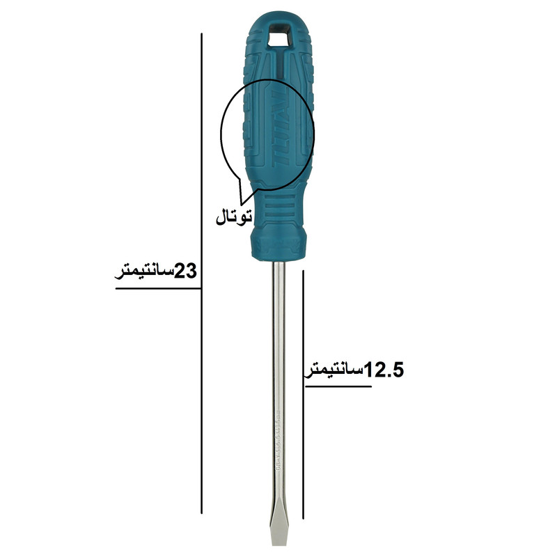طول پیچگوشتی 23 سانت /طول دسته 10.5 سانت/طول میله 12.5سانت/ ضخامت میله 6 میلیمتر