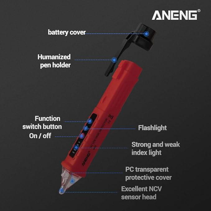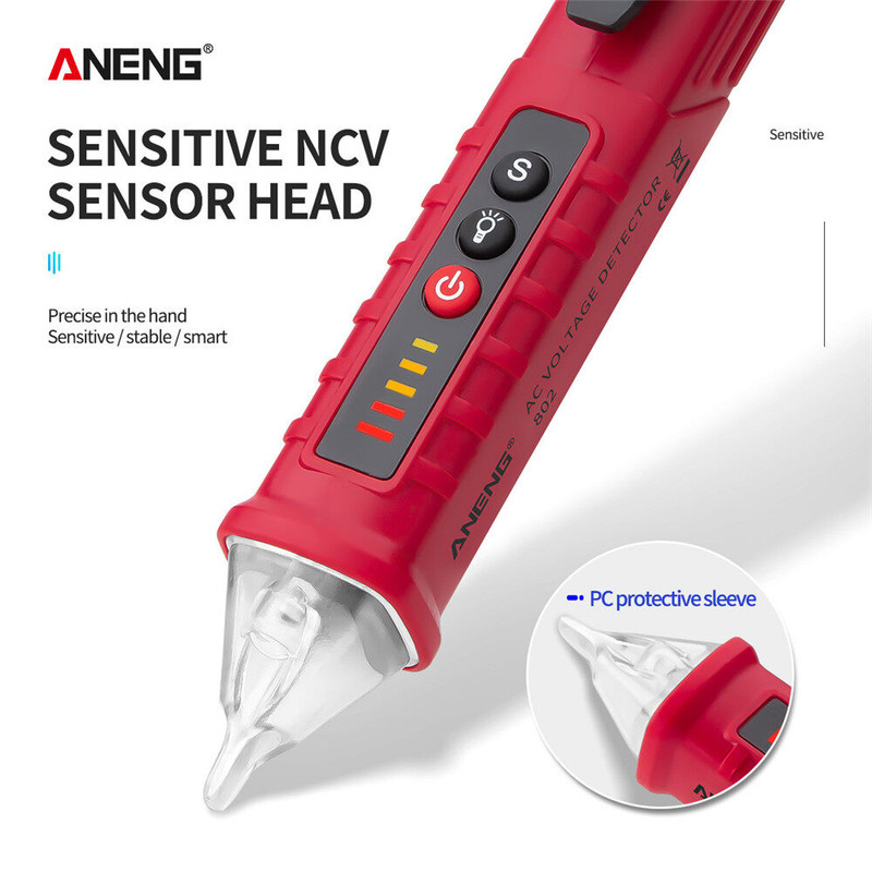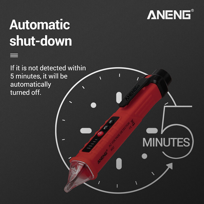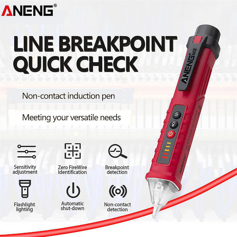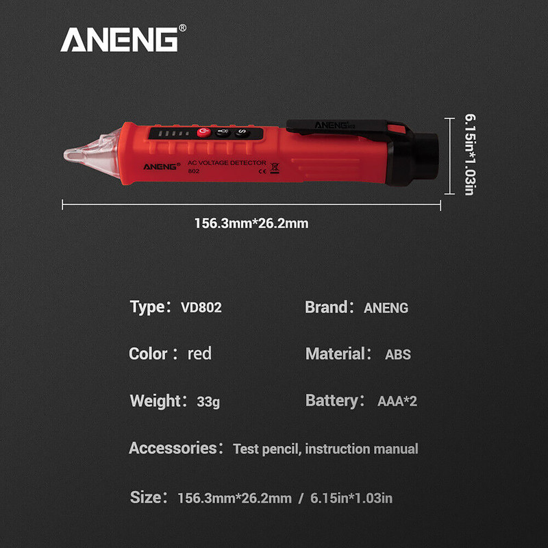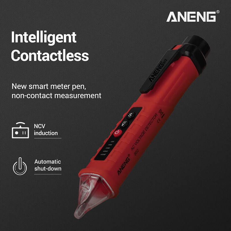 فازمتر القایی و تستر مدل 802 به صورت بدون تماس و یا non-contact می تواند وجود و یا عدم وجود ولتاژ را در خطوط تغذیه و یا مسیرهای عبور ولتاژ ( از روی سیم ) را در محدوده 12 تا 1000 ولت تشخیص بدهد. این فازمتر قلمی از محصولات کمپانی ANENG است و دقت بالایی دارد. بدنه این فازمتر غیر تماسی از جنس ABS ساخته شده و به رنگ قرمز مشکی است. از ویژگی های این فازمتر داشتن فلش لایت ( چراغ قوه ) است و سبب می شود تا تست و عیب یابی در محیط های تاریک آسان شود. این کالا به همراه باتری بفروش می رسد که درون فازمتر وجود دارد و نیاز به تهیه باتری نخواهید داشت.