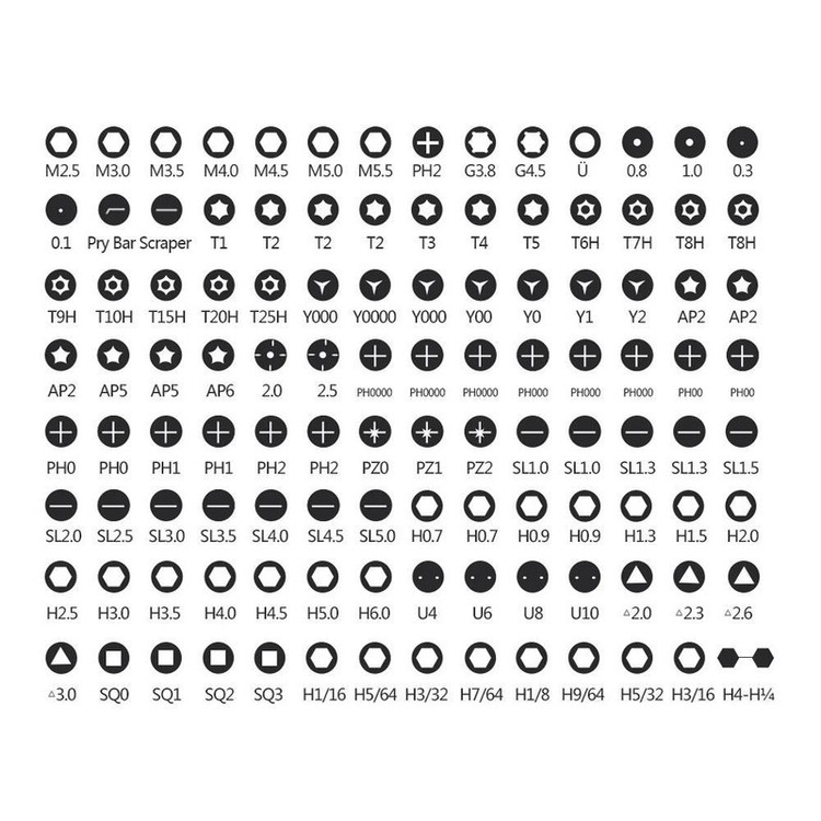 آلن , بکس , چهار سو , چهار سوی خاردار , چهارگوش , دو سو , دوازده پر , ستارهای , ستارهای سوراخدار , سهپر , قلاب , مثلثی
