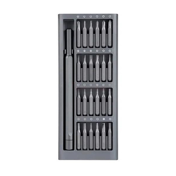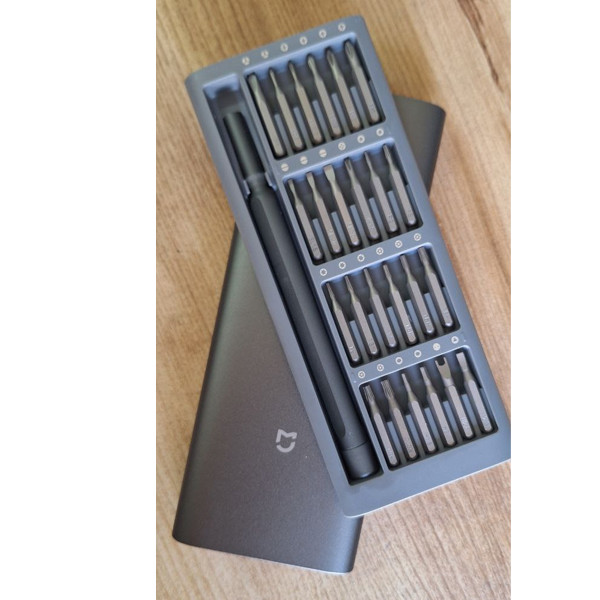 پیچ گوشتی 24 سری میجیا که یک محفظه مقاوم و آلومینیومی مات و مشکی رنگ برای آن در نظر گرفته شده، تنها 0٫3 کیلوگرم وزن داشته و ابعاد آن نیز16٫80 x 6.70 x 1.70 سانتی می باشد. بنابراین این جعبه کوچک در یکی از کشوهای خانه یا حتی داشبورد خودرویتان، فضای زیادی را اشغال نکرده و حمل و جا به جایی آن نیز برایتان دشوار نخواهد بود.
