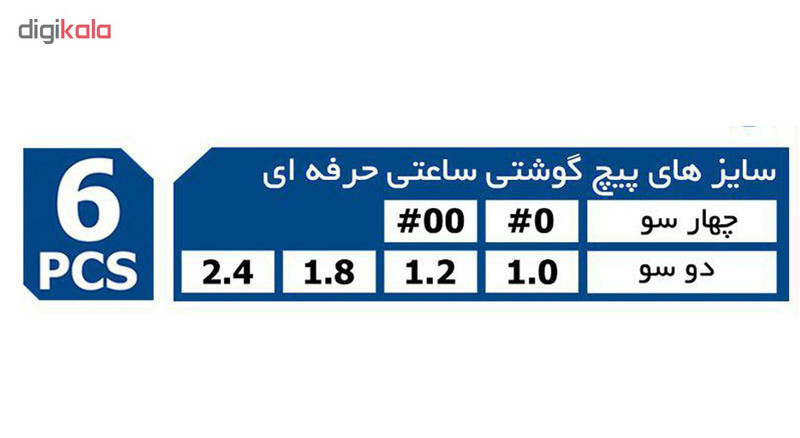 4 عدد دو سو در سایز های : 0 ، 1.2 ،1.8 و 2.4 میلیمتر 2 عدد چهار سو در سایز های : PH0وPH00