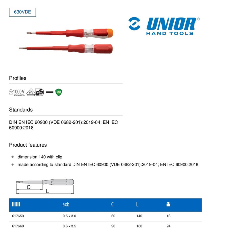 - فازمتر یونیور - عرض تیغه 3.5 میلی متر - طراحی ارگونومیک دسته ها برای مراقبت از دست ها - سطح تماس زیاد برای ایجاد گشتاور بیشتر - کیفیت ساخت بی نظیر - ساخته شده طبق استاندارد DIN EN IEC 60900 (VDE 0682-201) - طول 18 سانتی متر - ساخت اسلوونی