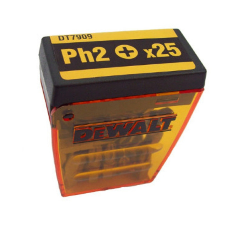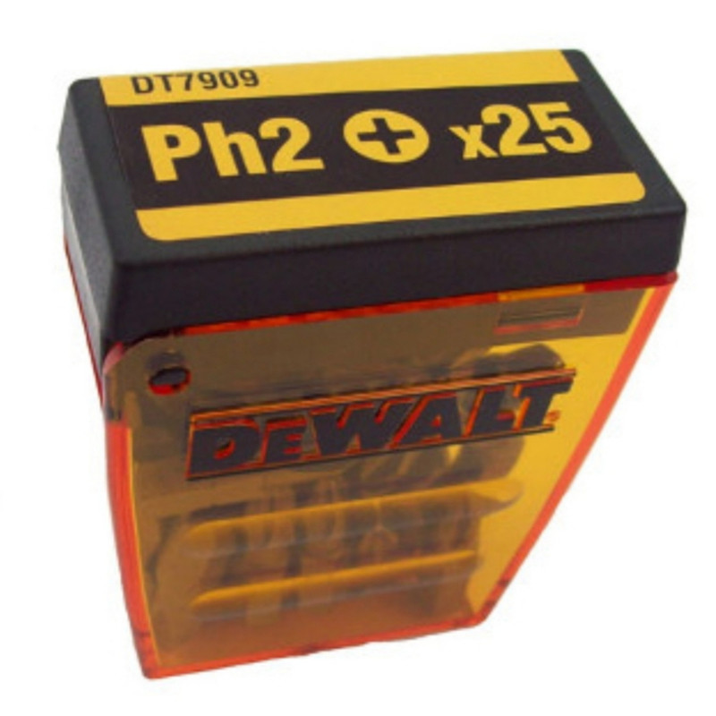 25 عدد سری پیچ گوشتی با طول 25 میلیمتر با شکل چهار سو سایز PH2 تمامی سر پیچ گوشتی ها ساخت کمپانی دیوالت بوده و نام تجاری این شرکت (DEWALT) روی آن حک شده است کیفیت ساخت محصول بسیار بالا می باشد