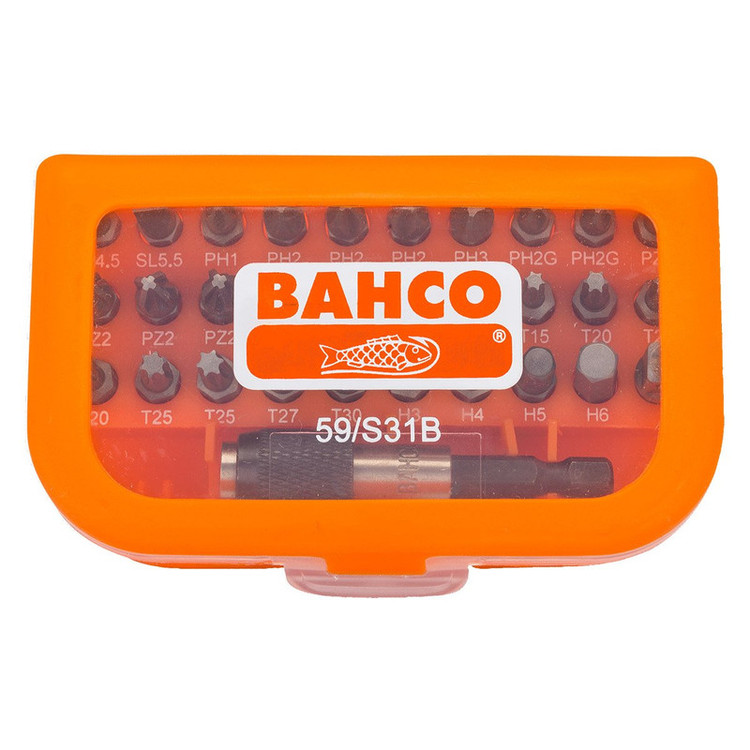 25 mm bits: SL4.5, SL5.5, PH1, PH2 x3, PH3, PH2G x2, PZ1, PZ2 x3, PZ3, T10, T15 x3, T20 x3, T25 x2, T27, T30, HEX3, HEX4, HEX5, HEX6