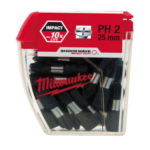 25 عدد سری پیچ گوشتی با طول 25 میلیمتر با شکل چهار سو سایز PH2 تمامی سر پیچ گوشتی ها ساخت کمپانی میلواکی بوده کیفیت ساخت محصول بسیار بالا می باشد