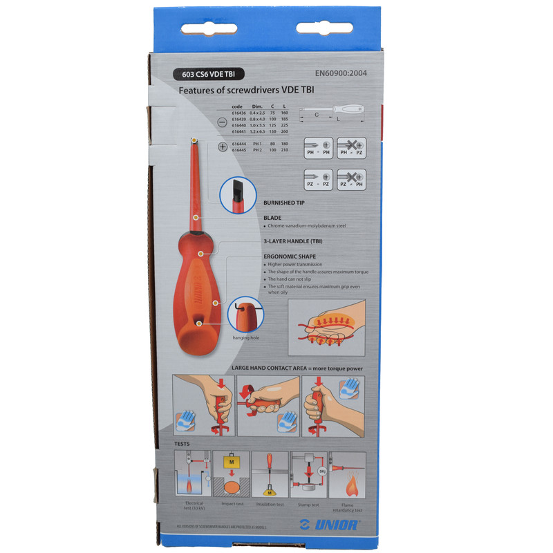 - روکش عایق برق 1000 ولت (VDE) - کیفیت ساخت بالا - دسته ارگونومیک خوش ساخت - حداکثر گشتاور به دلیل سطح تماسی بزرگ - پوشش سه لایه دسته (TBI) - تیغه ها ساخته شده از آلیاژ کروم مولیبدن - ساخت اسلوونی