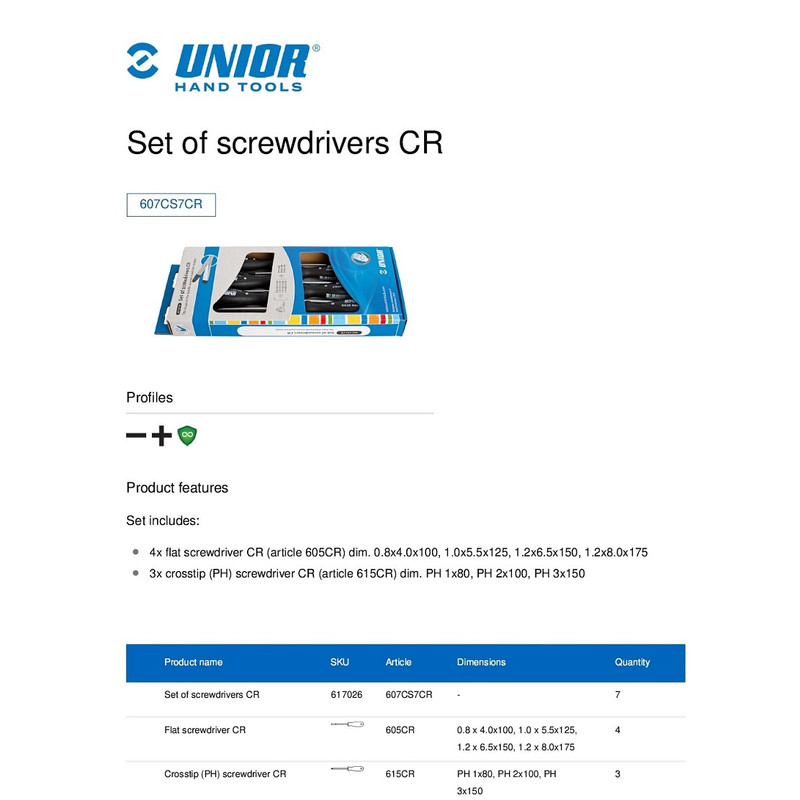 پیچ گوشتی یونیور مدل 607CS7CR بسته 7 عددی
