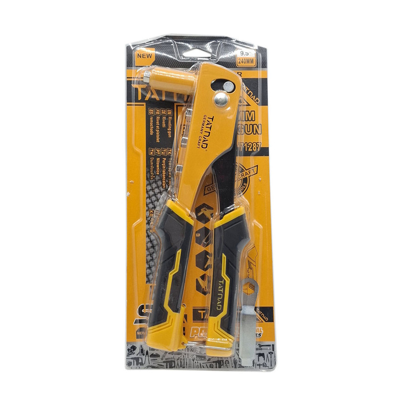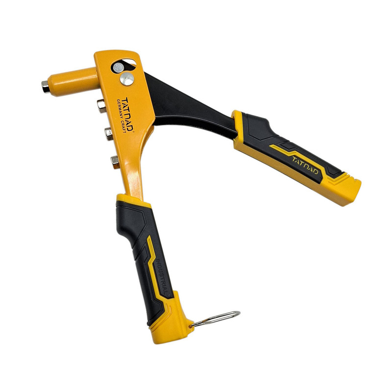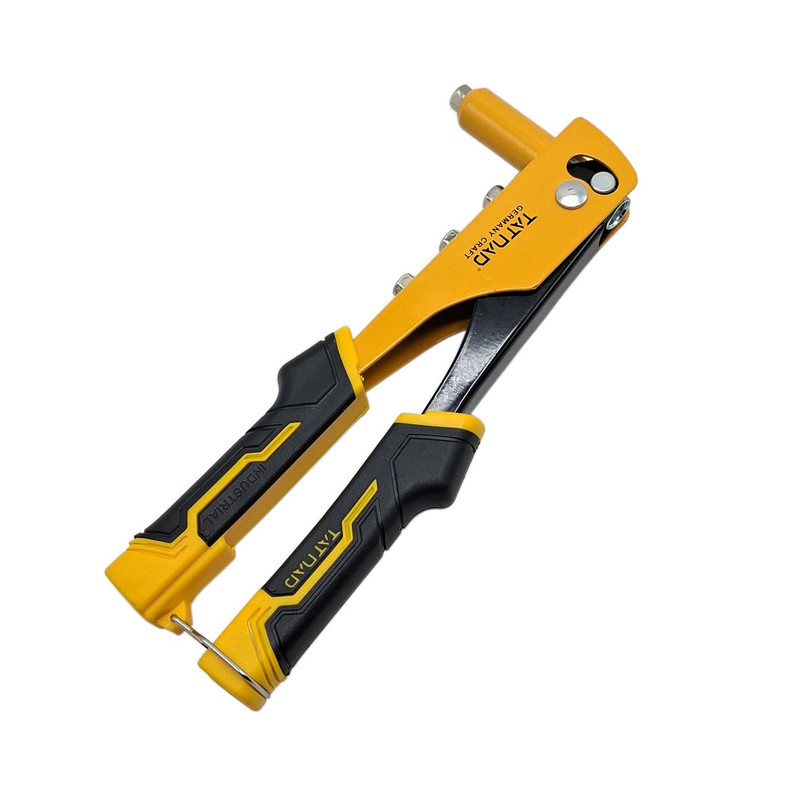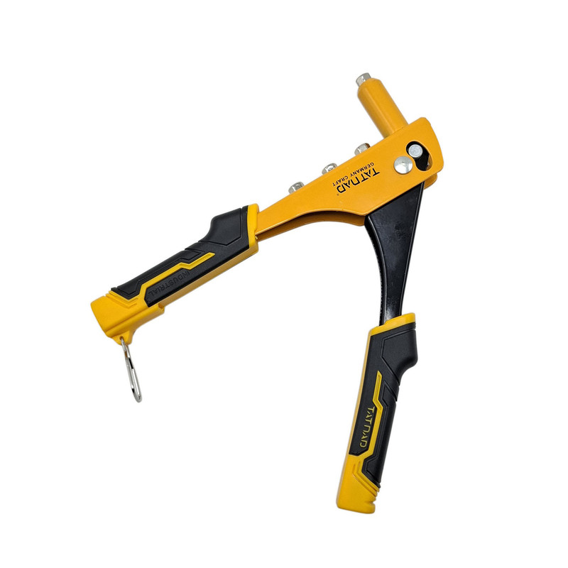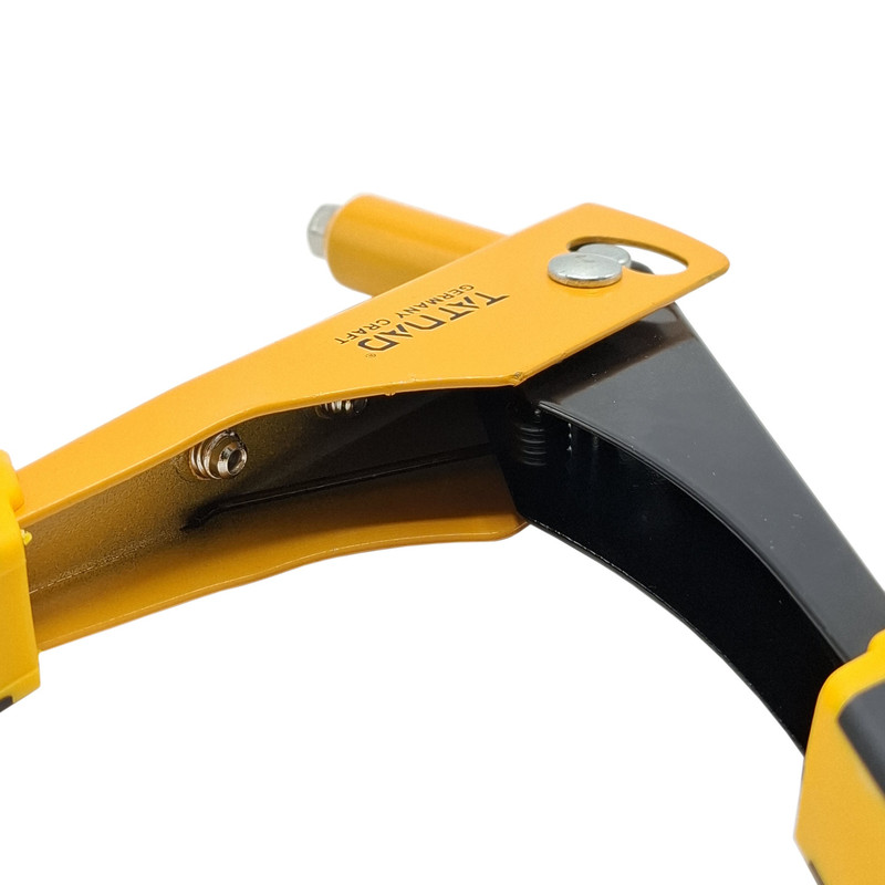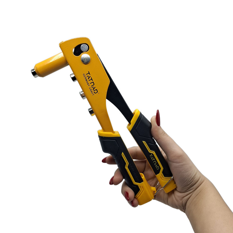 قطعات فولادی مقاوم، پشتیبانی از میخ پرچ های ۲,۴ تا ۴,۸ میلی متر، دسته های روکش شده با PVC، قابلیت پرچ کاری انواع میخ های از جنس استیل و آلومینیوم، ضد لغزش و ضد تعریق