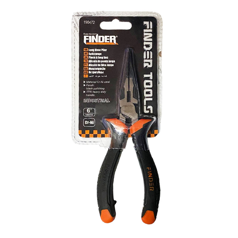 انبر دمباریک فایندر برای کارهای حرفهای بسیار مناسب است. جنس مناسبی برای ساخت این انبر به کار گرفته میشود. این محصول با طول 150میلیمتر دارای تیغهای فولادی است. جنس استیل (فولاد) تیغه باعث مقاومت بالای این وسیله در برابر فشار میشود. برای جلوگیری از زنگ زدن تیغه، رنگ شفافی به آن میزنند. روی تیغهی این محصول قسمتی برای برش سیم یا اجسام دیگر قرار دارد. دهانهی این ابزار تا 50 میلیمتر باز میشود.