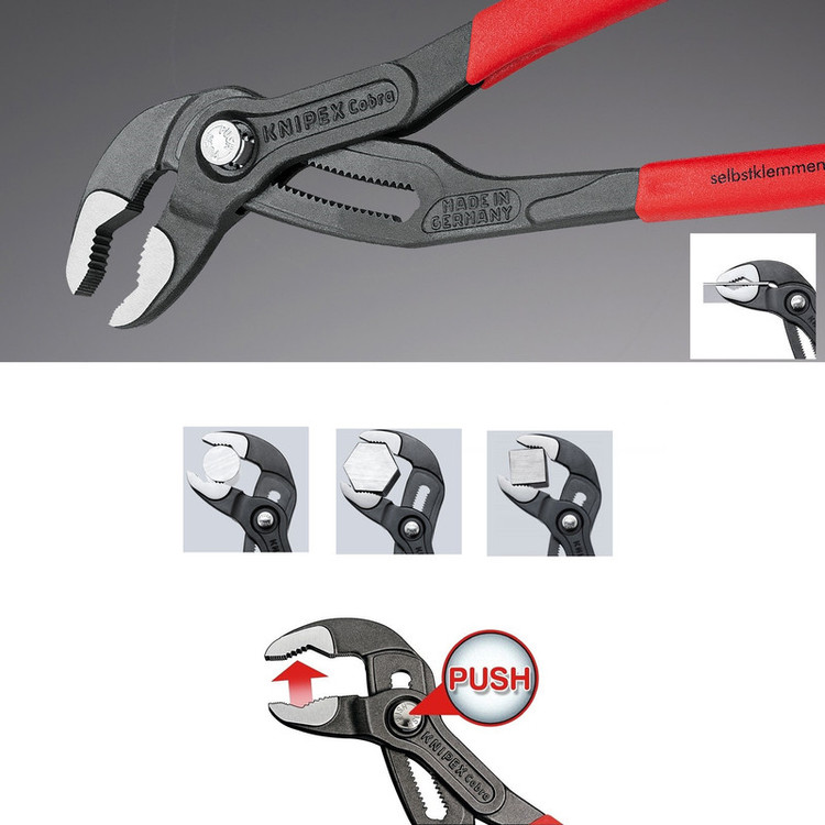 - دارای دکمه تنظیم بازشوندگی فک ها با 25 موقعیت تنظیم - دارای 30 درصد قدرت بیشتر نسبت به انبر کلاغی های دیگر - دارای دسته با پوشش ضد لغزش و تعریق - دارای دندانه های با بالاترین مقاومت در برابر فشار و سایش - ساخت کارخانه کنیپکس آلمان