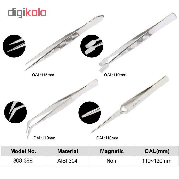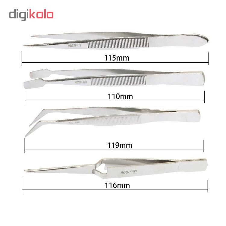 مجموعه 4 عددی پنس شرکت پروسکیت تولید تایوان پنس صاف 115 میلی متری 10 گرمی پنس کج 119 میلی متری 12 گرمی پنس معکوس 116 میلی متری 13 گرمی پنس پهن 110 میلی متری 11 گرمی