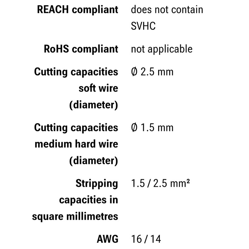 ظرفیت برش سیم نرم 2.5 میلی متر ظرفیت برش سیم متوسط 1.5 میلی متر ظرفیت برش سیم سخت تا 1.5 میلی متر