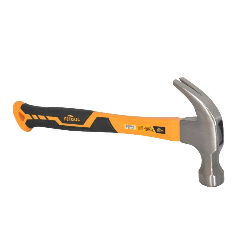 چکش دوشاخ دسته فایبر ۲۵۰ گرم جاستر با دسته تمام فایبر نشکن روکش دسته از لاستیک ضد لغزش فک فورج با پولیش کامل و ضد زنگ، دارای فک مگنت دار برای نگه داری میخ اتصال محکم دسته و فک با رزین اپوکسی مخصوص