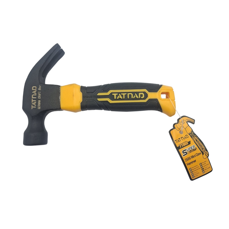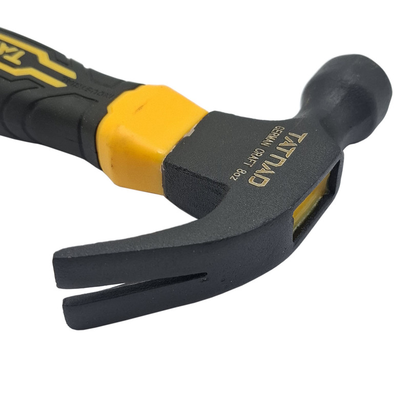 چکش میخ کش دسته کوتاه تاتند کد 71089 دارای وزن 310 گرم ساخته شده از فولاد ریخته گری با روکش ضدزنگ است که به روش آهنگری ساخته شده است و سطح آن برای استقامت بالاتر و کاربری بهینه، سخت کاری شده است. این چکش دسته کوتاه دارای مقاومت بالا در مقابل ضربه های سخت است و با طراحی و تولید با کیفیت و مناسب، در امور مختلف عمومی و تخصصی صنعتی برای ضربه زنی ، میخ کشی، ساخت و مونتاژ و تعمیرات، به کار شما خواهد آمد. دستهی فایبر گلاس 18سانتیمتری این چکش دوشاخ دسته کوتاه، از PP با دستگیرهی پلاستیک TPR کنگرهدار ساخته شده که مستهلککنندهی ضربه است و طراحی ارگونومیک و سازگار با دست دارد. اتصال دسته به وزنهی این چکش با کمک چسب اپوکسی و به صورت کاملا مستحکم انجام شده است. قسمت ضربه زن این چکش، به صورت دایرهای با 21 میلیمتر است. این چکش خوش دست، 320 گرم وزن و طولی برابر با 16 سانتیمتر دارد. ابعاد کلی این ابزار دستی، برابر با 2×11×16 سانتیمتر است و در کشور چین تولید شده است.اگر برای امور نجاری و سایر فعالیتها و مشاغل خود نیازمند خرید چکش میخ کش دسته کوتاه هستید، توصیه می کنیم این چکش لاین را در نظر داشته باشید.