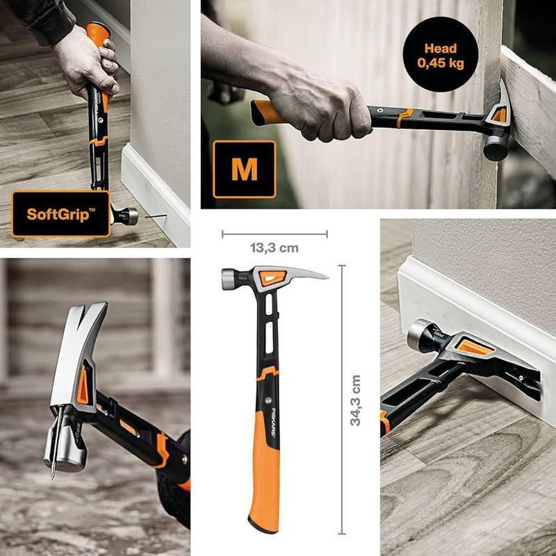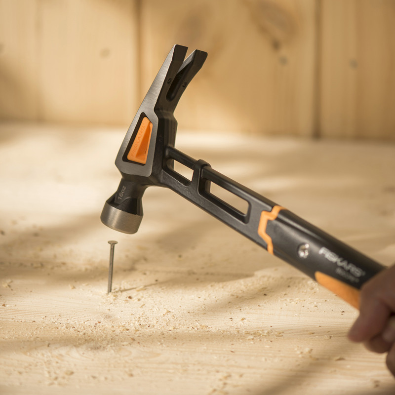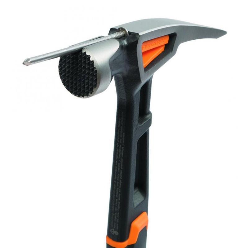 چکش فیسکارس سازنده ای فنلاندی دارد که سازنده بهترین محصولات باغبانی، کمپینگ و آشپزخانه است. این برند فنلاندی در زمینه تبر، کارد آشپزخانه و قیچی، طراح و سازنده برترین نمونه هاست. دارای دسته ای زیبا، به رنگ نارنجی - مشکی است که مانند تبرهای این برند یکی از زیباترین طراحیهاست. دارای دسته ای: از جنس پروپیلن است که در حین ساخت، تحت تغییرات شدیداً مهندسی شده قرار گرفته است؛ تا یکی از بهترین انواع چکش را در دنیا ساخته باشد. دسته آنتی شوکِ چکش فیسکارس، با تکنولوژیِ فوق العاده IsoCore میزان شوک را به حد حیرت آوری تا 4 برابر کاهش داده است. البته از مهندسیِ خارق العاده فیسکارس، غیر از این نیز انتظار نمی رود. دسته دو لایه چکش فیسکارس با استفاده از ترکیبات خاص و فرم دهیِ حساب شده، لرزشی بسیار کم دارد. چکش قدرتمند فیسکارس بر اساس اعلام کارخانه و طبق تستهای انجام شده تجربی، در تعدادی از باغداران، میزان خستگی ماهیچه و عضلات را به مقدار زیادی کاهش داده است.