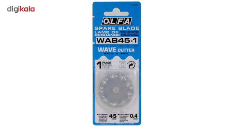 - تیغ دایره ای 45 میلیمتری به ضخامت برش 0.4 میلیمتر - برش زیگزال - مناسب برای کاتر های RTY-2G ، RTY-2DX و RTY-2NS - مناسب برای برش کاغذ ، مقوا ، پارچه و چرم