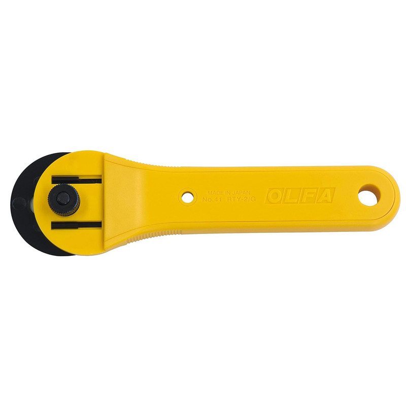 بزارآلات دستی و برشی برند OLFA ساخت کشور ژاپن دسته تیغ رولی و کاتر غلطکی سایز بزرگ با کیفیت عالی ایده آل برای برش ورق های چند لایه و چند جداره تا 5 لایه مناسب برشکاری کنترل شده اشکال هندسی چهارگوش، گرد و ... می باشد. تیغه فولادی از نوع RB45H با جنس استیل ضد زنگ و مقاوم سایز قطر تیغه 45 میلی متر و ضخامت 0.3 میلی متر استاندارد مجهز به کاور محافظ تیغه و لود سریع و روان هنگام برشکاری سیستم تعویض آسان و راحت تیغ با طراحی ارگونومیک است