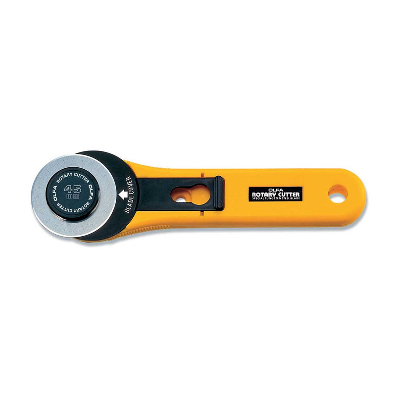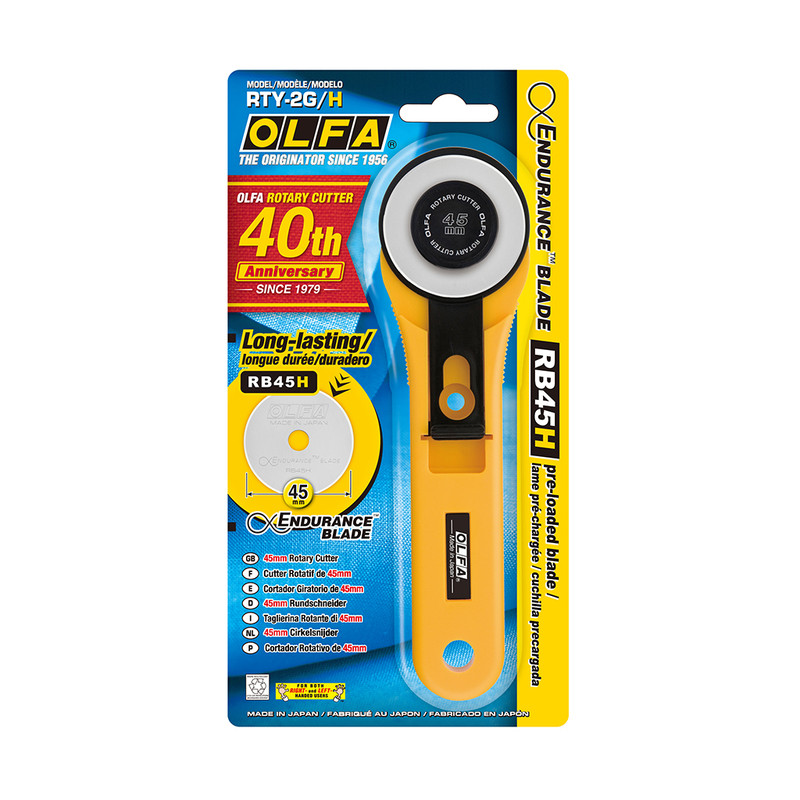 کاتر Olfa مدل RTY-2GH ، در رنگ زرد موجود است. جنس بدنه این محصول پلاستیک می باشد. این کاتر دارای تیغه گرد مدل RB45H قطر 45 میلیمتر می باشد.این محصول دارای پوششی برای تیغه می باشد تا در هنگام عدم استفاده روی آنرا بپوشانید. محصول فوق مناسب برای انجام کارهای خیاطی و برش پارچه ، کاغذ و ... می باشد.