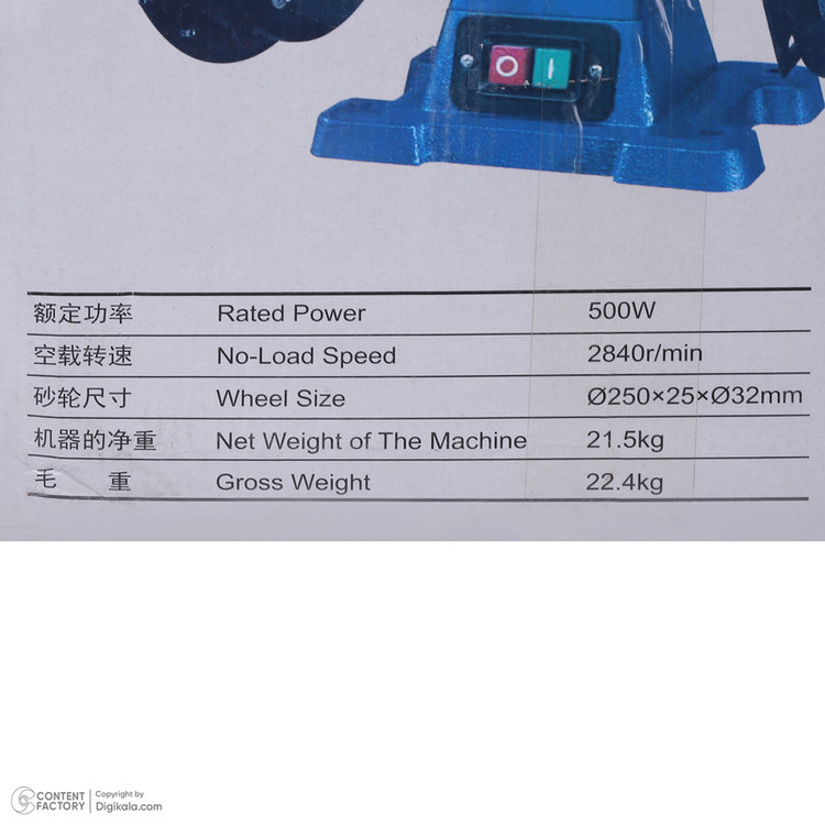 - سرعت حرکت آزاد 2840 دور بر دقیقه/توان 500 وات/ برق سه فاز 380 ولت/ کاربرد صنعتی/ قطر سنگ 25 سانتی متر ، ضخامت 2.5 سانتی متر و قطر شفت 3.2 سانتی متر