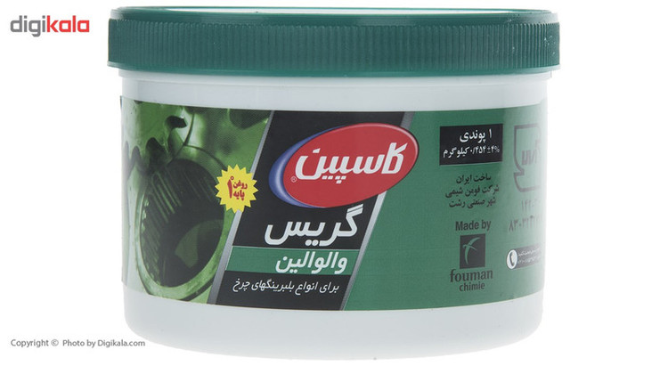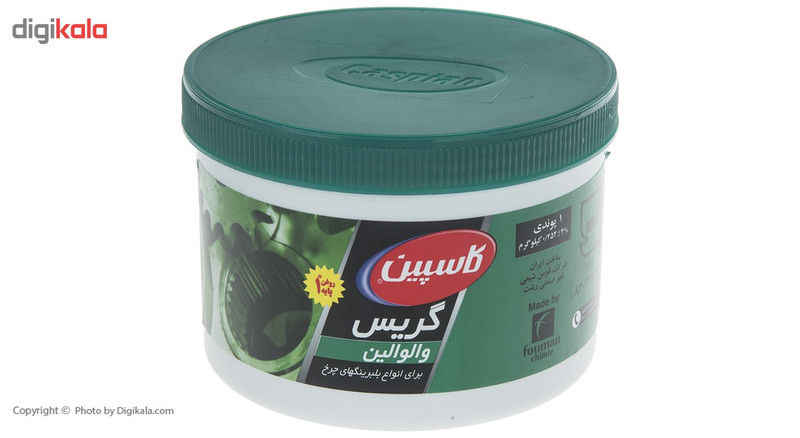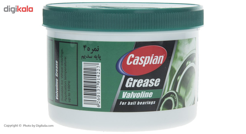 محصول فوق یکی از تولیدات شرکت ایرانی «کاسپین» (Caspian) است که در ظرفهایی پلاستیکی و با وزنی معادل 454 گرم تولید میشود. این گریس تحت عنوان مدل «والوالین» (Valvoline) به بازار عرضه میشود و بیشترین مورد استفاده از آن روانکاری بلبرینگهای چرخ است. این محصول میتواند در کنار روانکاری، نقشی محافظتی داشته باشد و از قطعات دربرابر خوردگی و زنگزدگی محافظت کند. این گریس از نوع نمره 4 بوده و بر پایه سدیم تولید میشود. از این محصول نباید در دمای بیش از 100 درجه سانتیگراد استفاده شود؛ چراکه دچار افت کیفیت میشود و نمیتواند بهخوبی روانکاری را انجام دهد. این گریس دربرابر آب مقاوم است و ماندگاری طولانی دارد. روانکاری قطعات اهمیت بسیار زیادی دارد و برای همین منظور از انواع روغنها و گریسها استفاده میشود. ساختار گریسها بهگونهای است که حالتی متراکمتر دارند و میتوانند در شرایط سخت و طولانیمدت مورد استفاده قرار گیرند. شرکت کاسپین محصول فوق را از روغن باکیفیت پایه 1 تولید میکند.