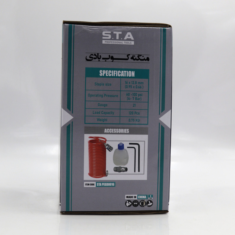 وزن775 گرمظرفیت خشاب120فشار باد مورد نیاز60-100 PSIاقلام همراه- شلنگ 10 متری فنری - دارای 2 عد آلن - قوطی روغن برای روغن کاریابعاد20x16x4.5 سانتیمتر