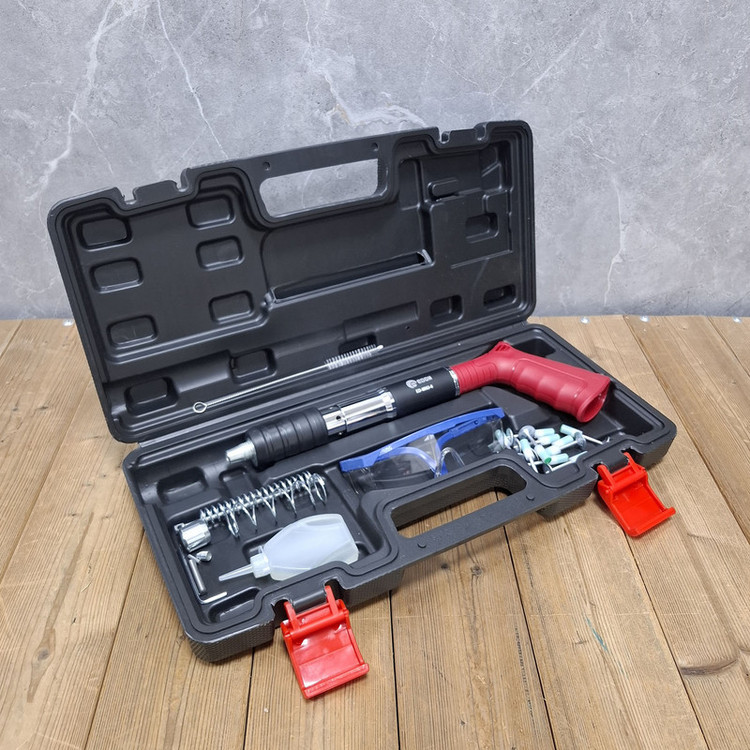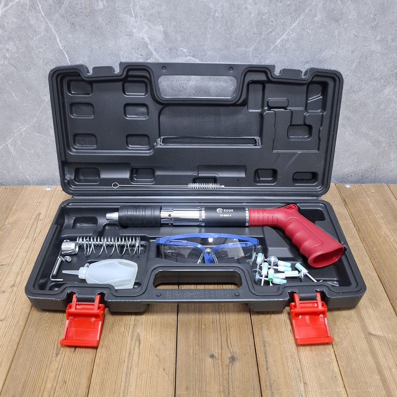 دفترچه .عینک .کیف حمل . 10 عدد میخ چاشنی .روغن . فرچه . ابزار یدک داخل میخکوب