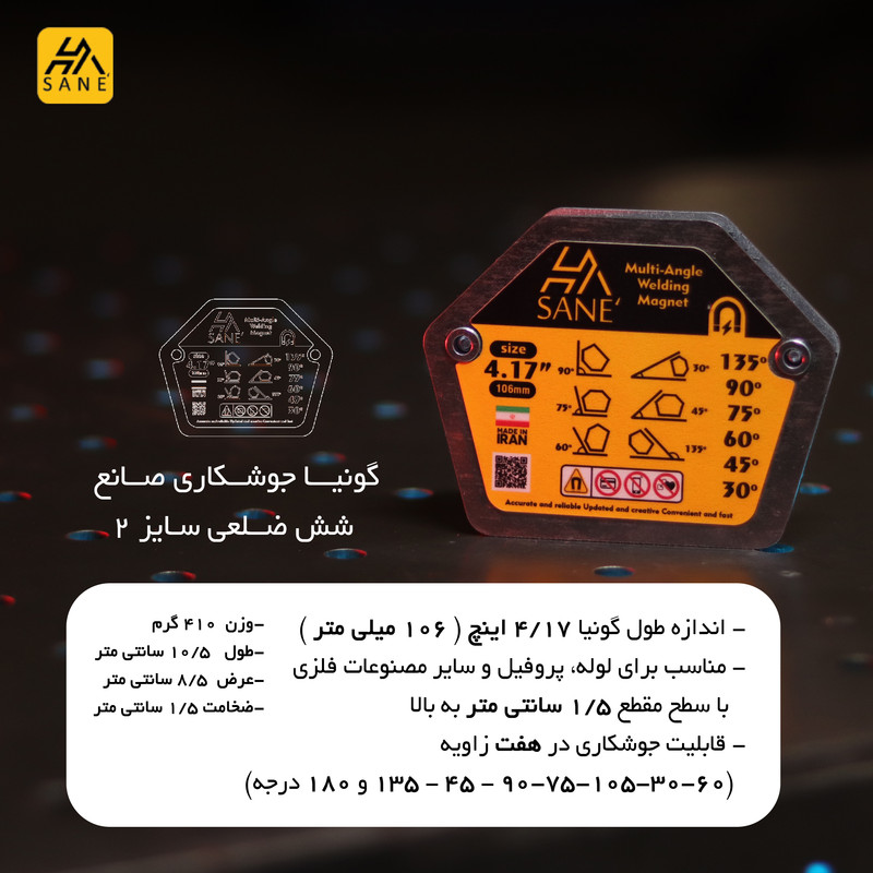 در جوشکاری یا مونتاژ خیلی مواقع پیش میاد که لازم است دو قطعه فلزی در یک موقعیت و زاویه خاصی نسبت به هم قرار بگیرن تا جوش داده بشن. اما انجام این کار بدون داشتن ابزار مناسب یا نفر کمکی یا فیکسچرهای مخصوص ، کاری دشوار محسوب میشود و دقیق نیست یا حتی میتواند به شما آسیب بزند مثله برق زدگی چشم یا سوختگی دست و پوست. برای حل این مشکلات، صانع ابزاری کاربردی به اسم گونیا آهنربایی جوشکاری را به شما پیشنهاد میدهد ، این ابزار با استفاده از خاصیت ربایش فلزات آهنربا و شکل خاص هندسی که دارد میتواند دو قطعه راو در زاویه مشخص در کنار هم نگه دارد تا شما عمل جوشکاری یا مونتاژ را انجام دهید. گونیاهای مگنتی صانع در سایزهای متنوع و هندسه های مختلف برای شما ساخته شده تا با توجه به نیاز شما بکار گرفته بشن. گونیا آهنربایی صانع مدل سه ضلعی سایز متوسط برای کار کردن با پروفیل، لوله و یا سایر مصنوعات فلزی با عرض 1/5 سانتیمتر به بالا مناسب است . شما میتوانید این گونیا را در زاویه های 90، 45،135،75،105،30،60 و 180 بکار بگیرید و دقت و سرعت را در کارتان افزایش دهید.