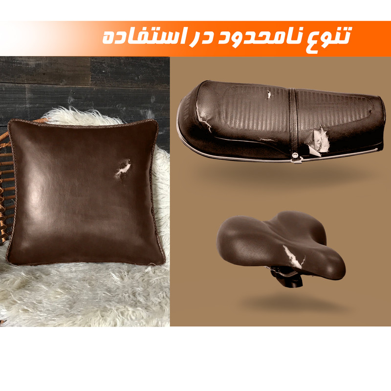 تولید ایران، ابعاد 100x20 سانتی متر، رنگ قهوه ای سوخته، دارای چسبندگی قوی، قابل استفاده برای انواع وسایل و اوازم چرمی، استفاده آسان