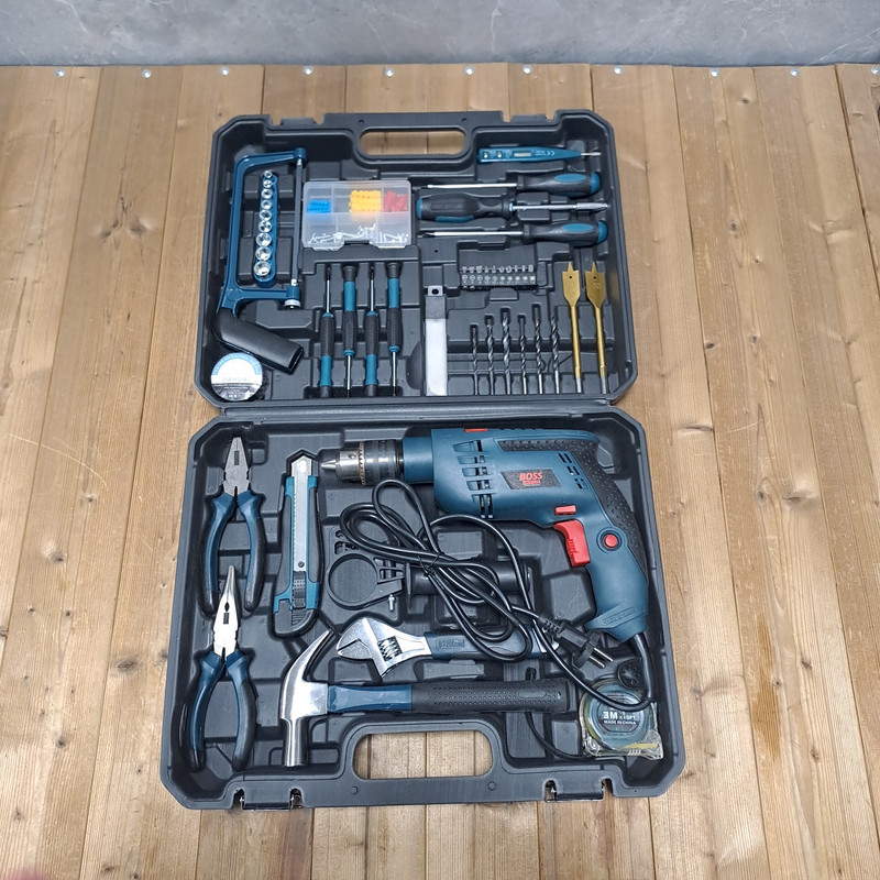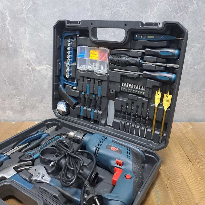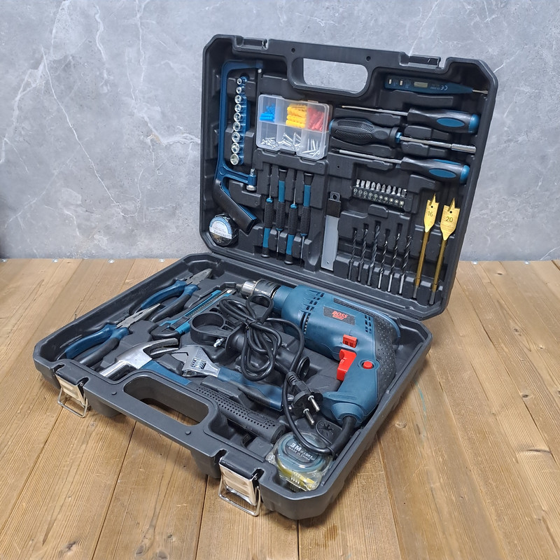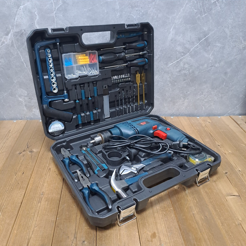 محتویات مجموعه: آچار بکس , آچار فرانسه , انبر دم باریک , انبر قفلی , انبردست , پیچ , پیچ گوشتی , چکش , رولپلاک , سری بکس , کیف ابزار , فازمتر , متر , مته , دریل , تیغ کاتر , چسب , سری پیچگوشتی , کاتر