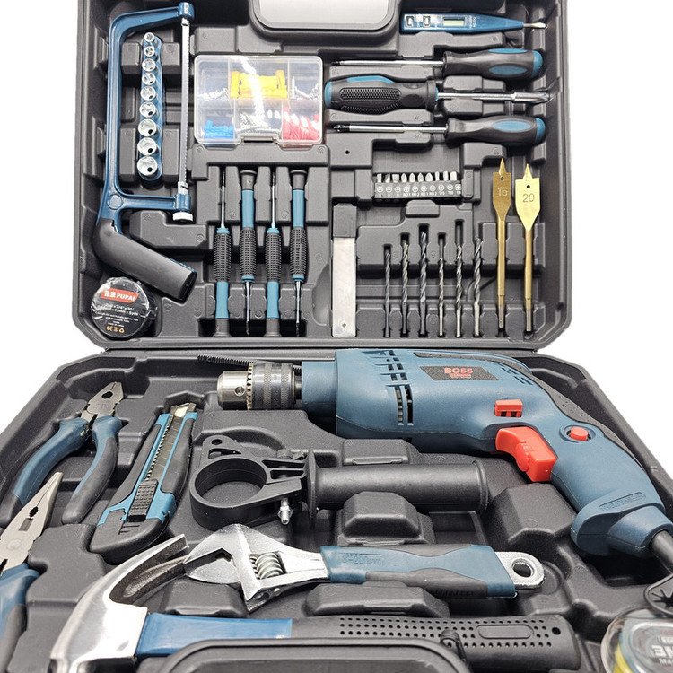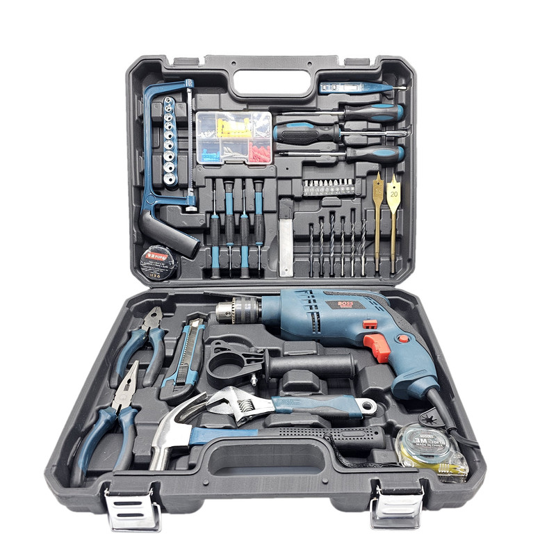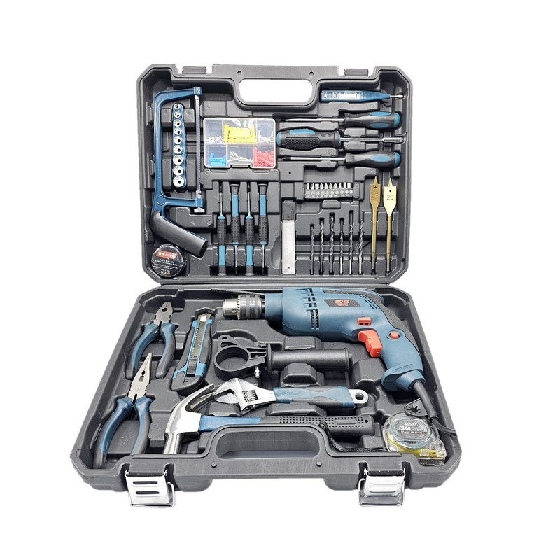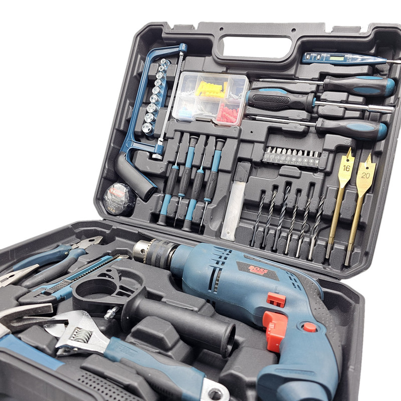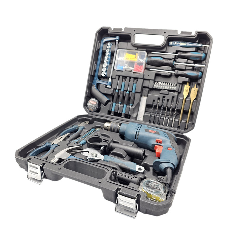 محتویات مجموعه: آچار فرانسه , انبر دم باریک , انبردست , پیچ , پیچ گوشتی , تیغ کاتر , چسب , چکش , رولپلاک , سری پیچگوشتی , فازمتر , کاتر , متر , مته , اره همهکاره , دریل