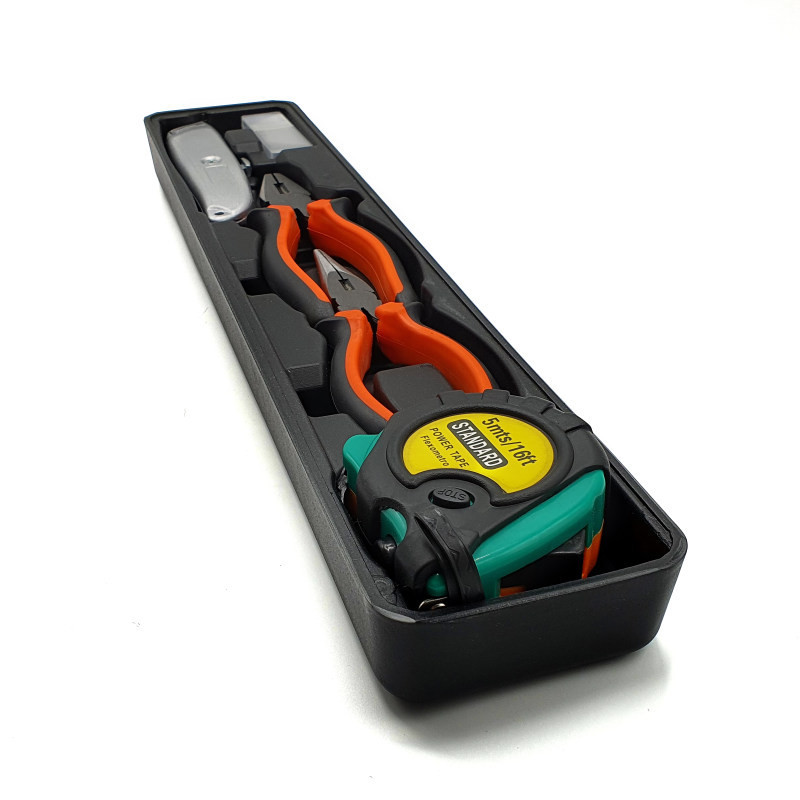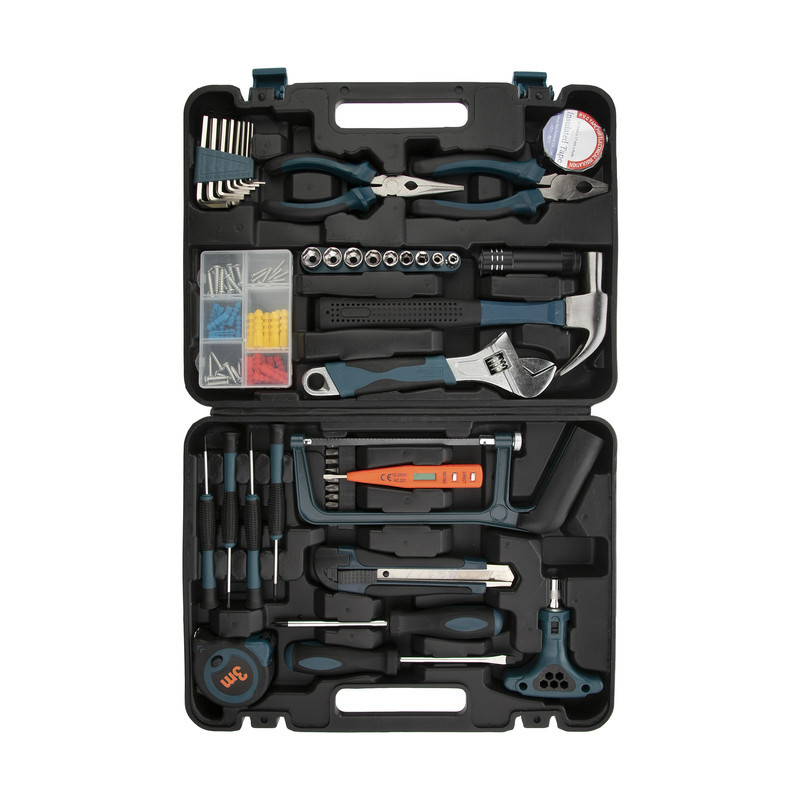 محتویات مجموعه: آچار آلن , آچار بکس , آچار فرانسه , اره افقیبر , انبر دم باریک , انبردست , پیچ , پیچ گوشتی , چراغ قوه , چکش , رولپلاک , سری بکس , سری پیچگوشتی , فازمتر , کاتر , کیف ابزار , متر