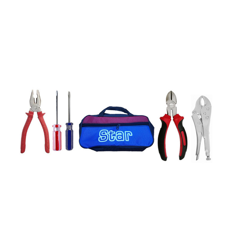 محتویات مجموعه: انبر سیمچین , انبر قفلی , انبردست , پیچ گوشتی , کیف ابزار