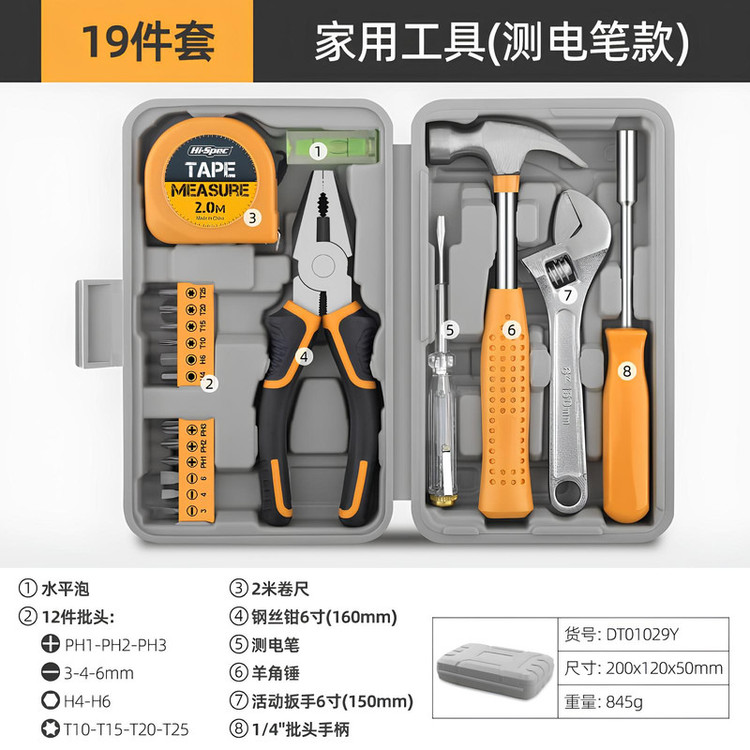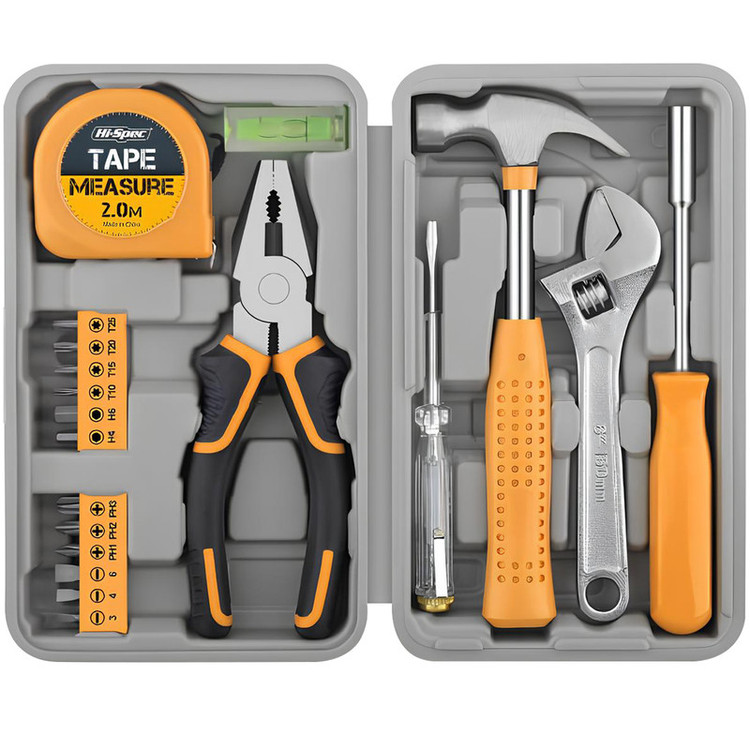 محتویات مجموعه: آچار فرانسه , انبردست , تراز , چکش , سری پیچگوشتی , فازمتر , کیف ابزار , متر
