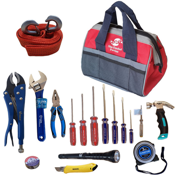 محتویات مجموعه: آچار فرانسه , انبر قفلی , انبردست , بست , چراغ قوه , چسب , چکش , سری پیچگوشتی , فازمتر , کاتر , متر , کیف ابزار