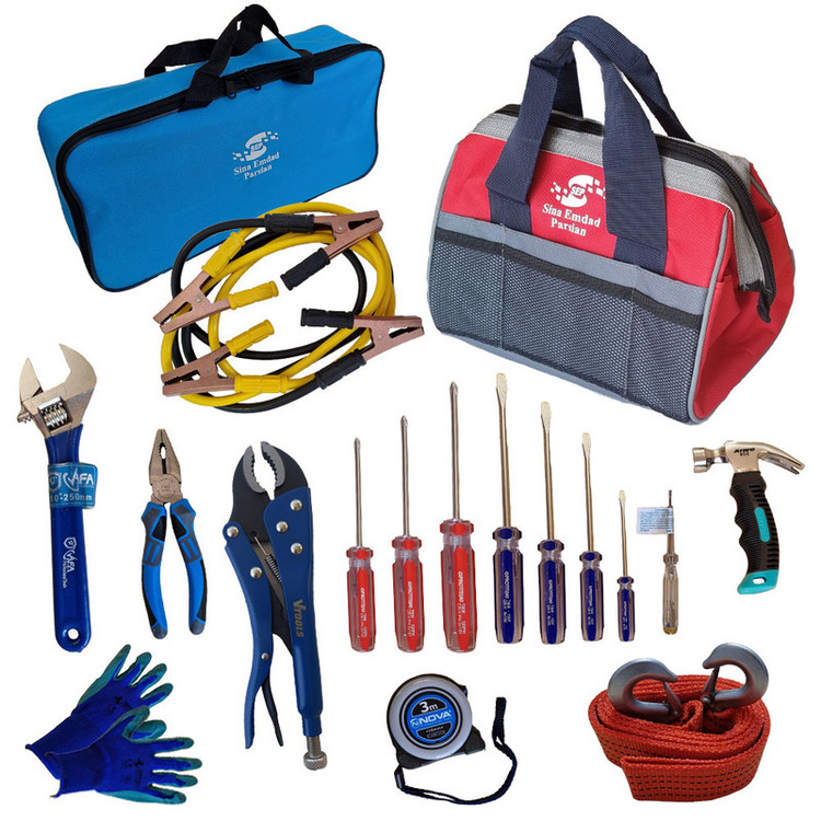 محتویات مجموعه: آچار فرانسه , انبر قفلی , انبردست , چکش , سری پیچگوشتی , فازمتر , کیف ابزار , متر