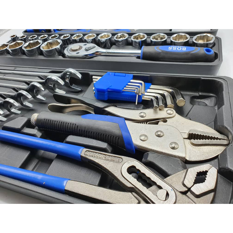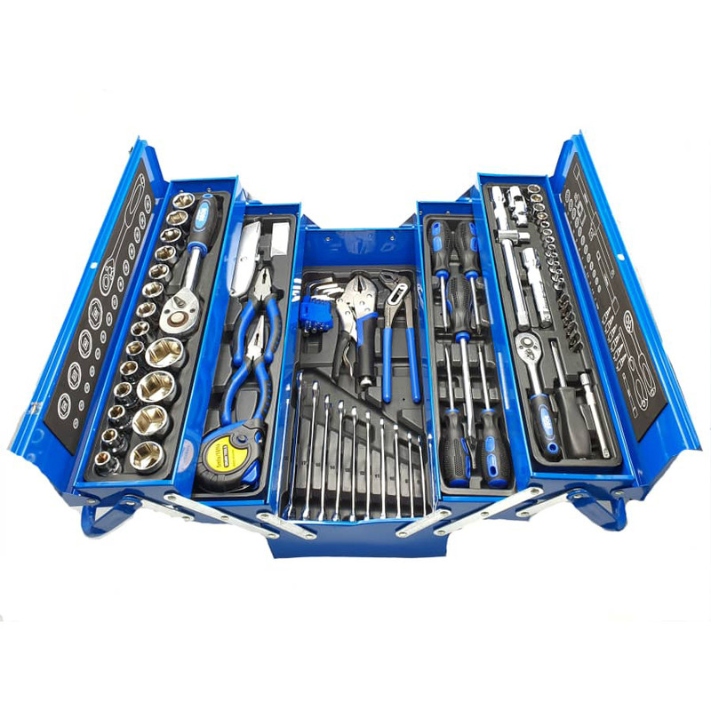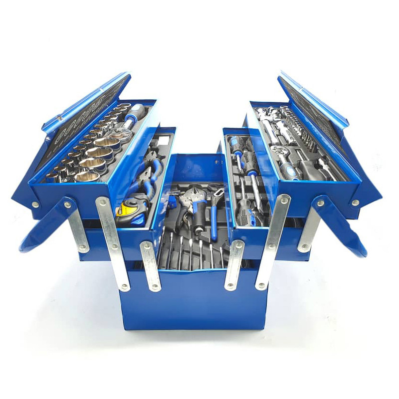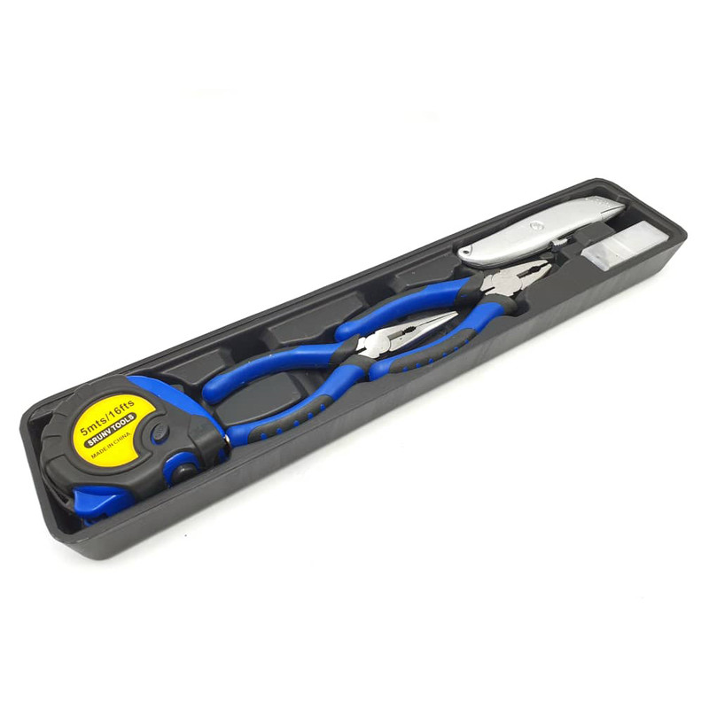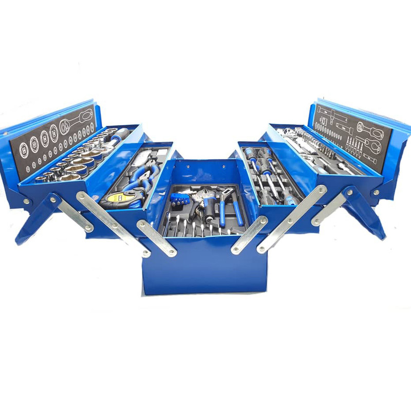 محتویات مجموعه: آچار آلن , آچار بکس , آچار یکسر تخت یکسر رینگی , انبر دم باریک , انبر قفلی , انبر کلاغی , انبردست , تیغ کاتر , دسته جغجغهای , کاتر