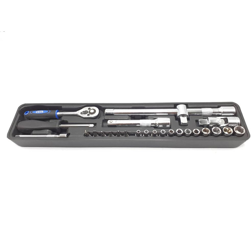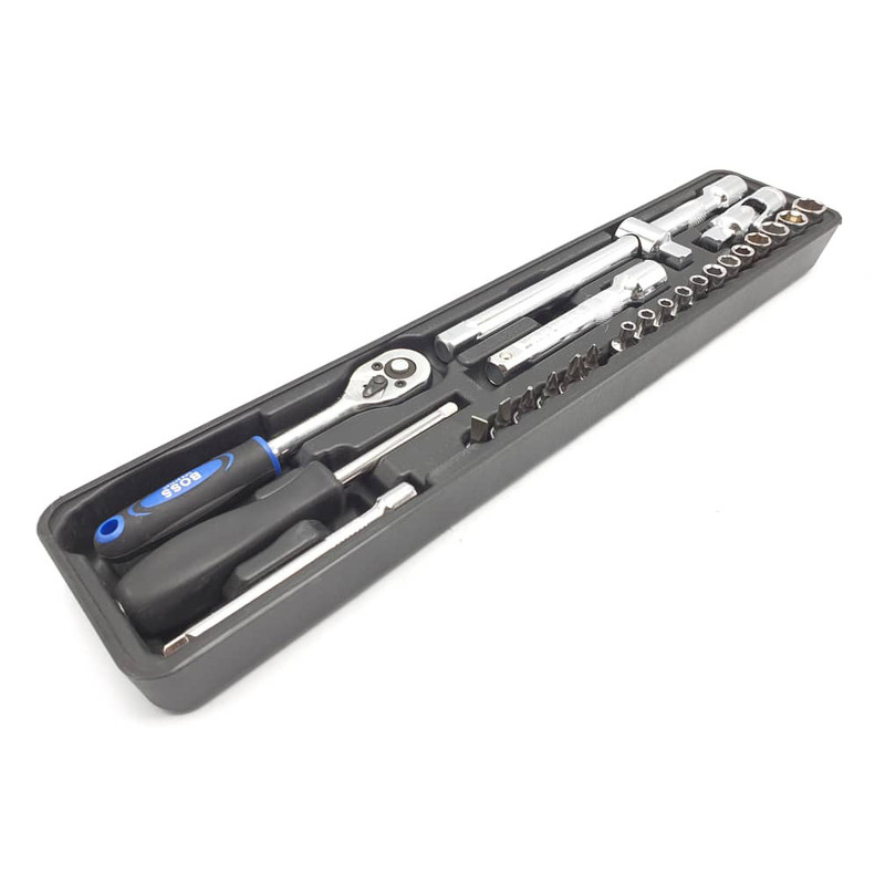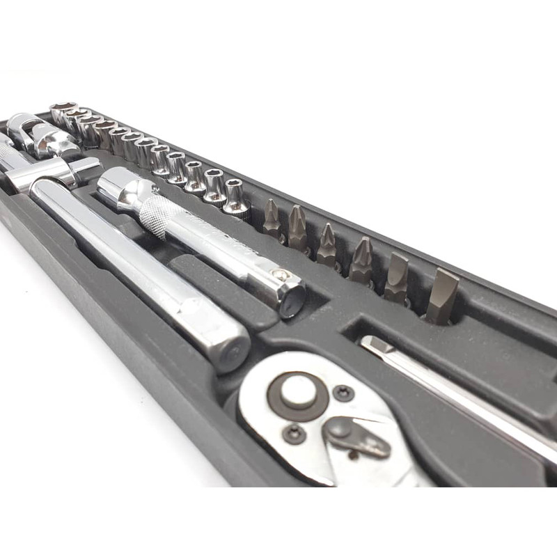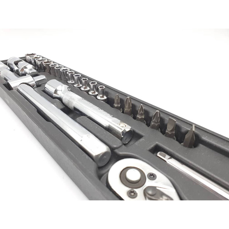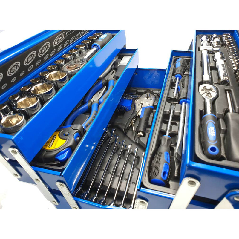 محتویات مجموعه: آچار آلن , آچار بکس , آچار یکسر تخت یکسر رینگی , انبر دم باریک , انبر قفلی , انبر کلاغی , انبردست , تیغ کاتر , دسته جغجغهای , کاتر