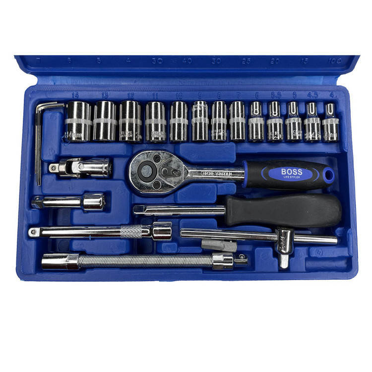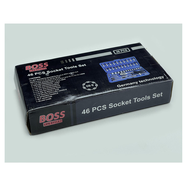 توضیحات تکمیلی مجموعه ابزار: جعبه بکس 46 عددی BOSS مدل GERMANY لایف استایل - اندازه جعبه بکس طول 24 عرض 12 و ارتفاع 4 سانتی متر - تهیه شده از آلیاژ با مقاومت و استحکام بالا