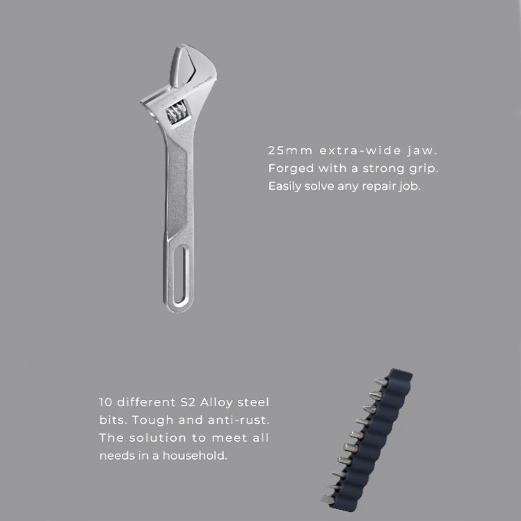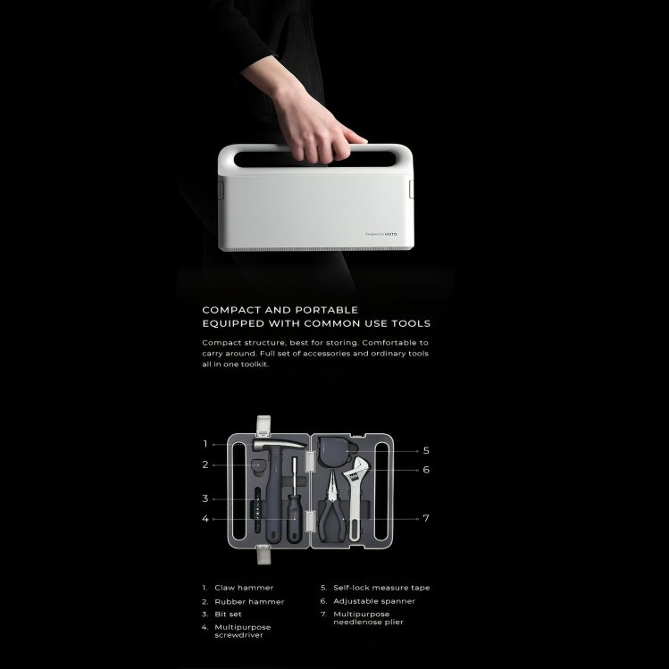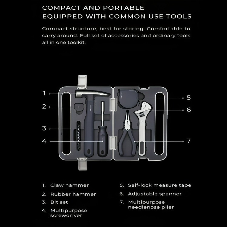 محتویات مجموعه: آچار فرانسه , انبر دم باریک , پیچ گوشتی , چکش , متر , کیف ابزار , سری پیچگوشتی