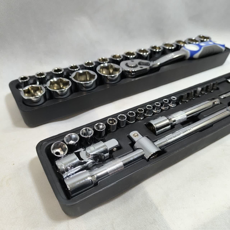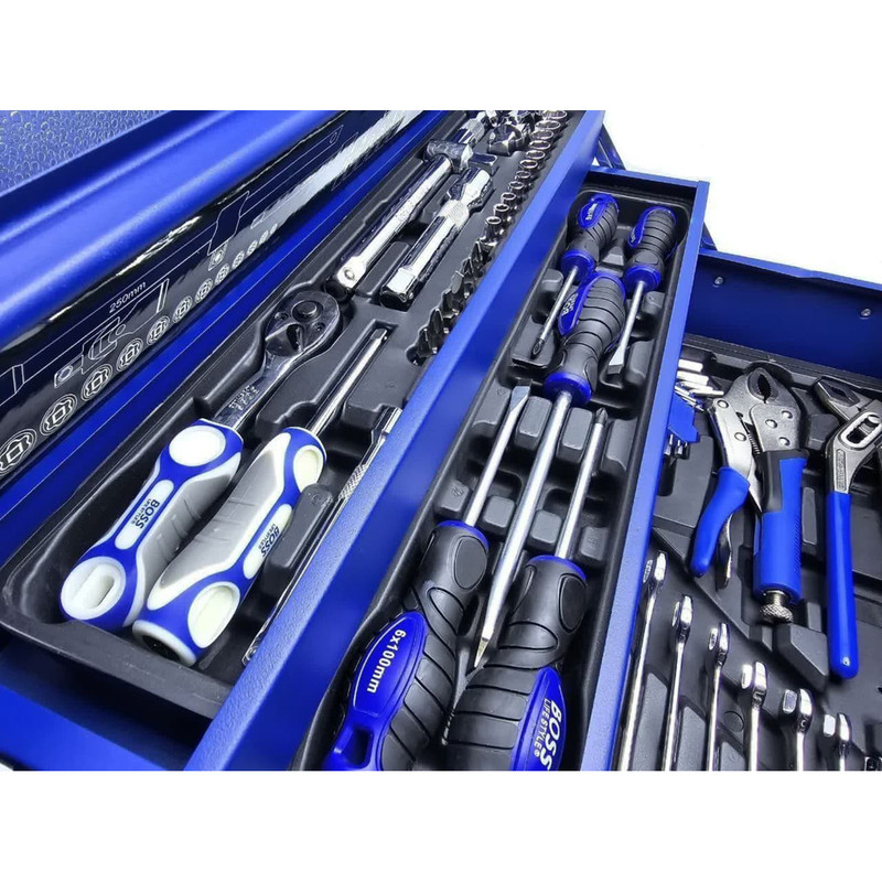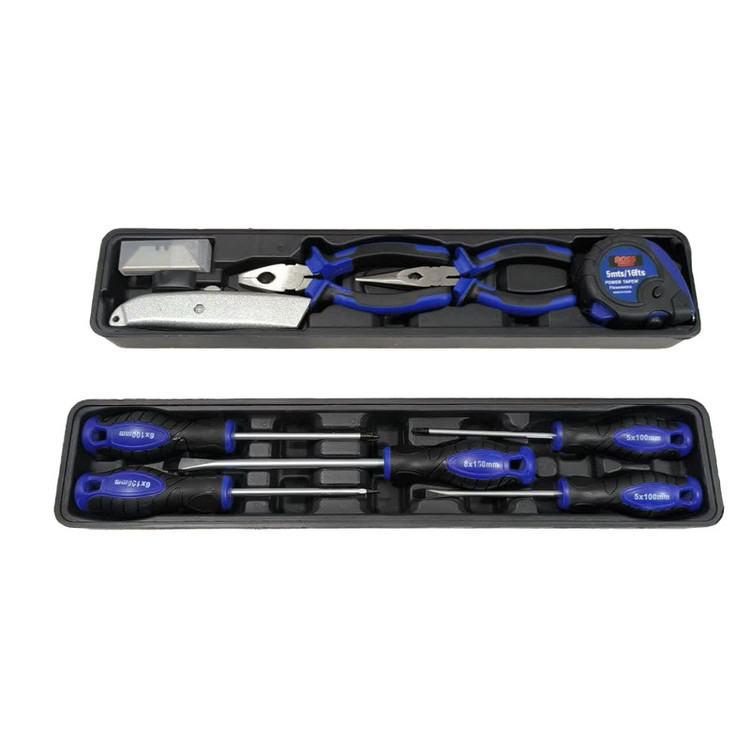 محتویات مجموعه: آچار آلن , آچار بکس , آچار یکسر تخت یکسر رینگی , آچار فرانسه , انبر کلاغی , انبر قفلی , انبردست , انبر دم باریک , پیچ گوشتی , دسته جغجغهای , سری بکس