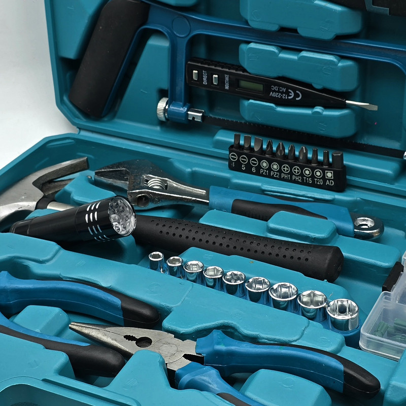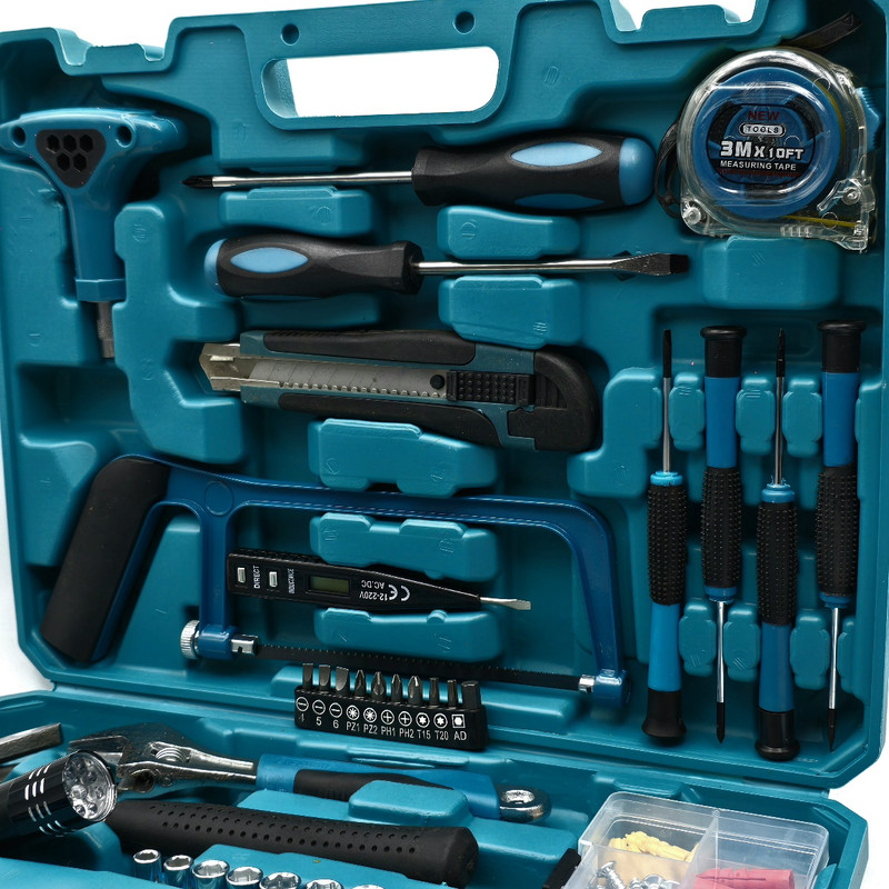 آچار آلن , آچار بکس , آچار فرانسه , انبر دم باریک , انبردست , پیچ , پیچ گوشتی , تیغ کاتر , چراغ قوه , چسب , چکش , دسته جغجغهای , سری بکس , رولپلاک , سری پیچگوشتی , فازمتر , کاتر , کیف ابزار , متر