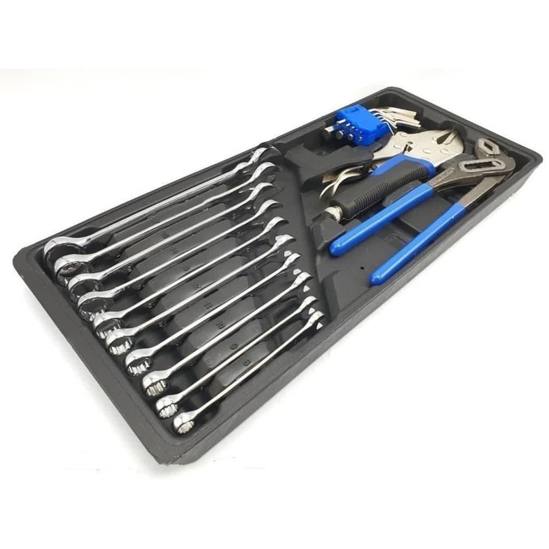 محتویات مجموعه: آچار بکس , آچار یکسر تخت یکسر رینگی , انبر قفلی , انبر کلاغی , انبردست