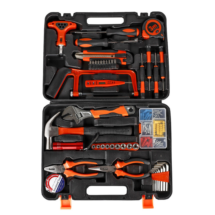 محتویات مجموعه: آچار آلن , آچار بکس , آچار فرانسه , انبر دم باریک , انبردست , پیچ , پیچ گوشتی , تیغ کاتر , چسب , چکش , رولپلاک , فازمتر , کاتر , کیف ابزار , متر