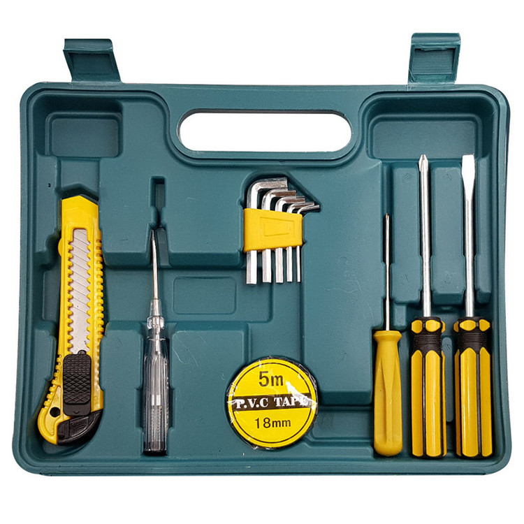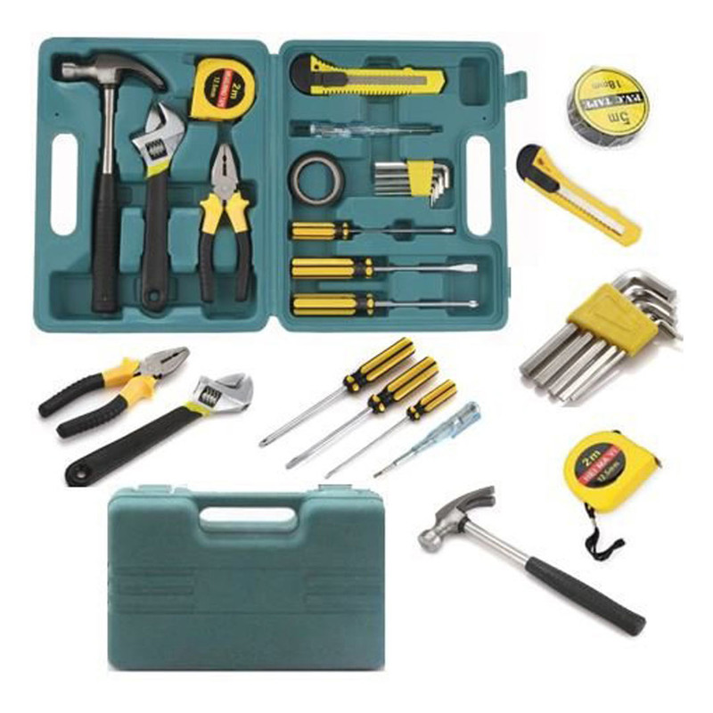 محتویات مجموعه: آچار آلن , آچار فرانسه , انبردست , پیچ گوشتی , چسب , چکش , فازمتر , کاتر , کیف ابزار , متر
