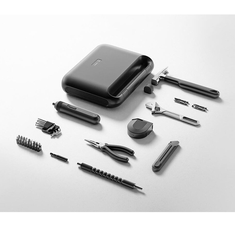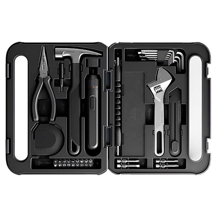 تیغ کاتر , تراز , پیچ گوشتی , چکش , کاتر , کیف ابزار , متر , انبر دم باریک