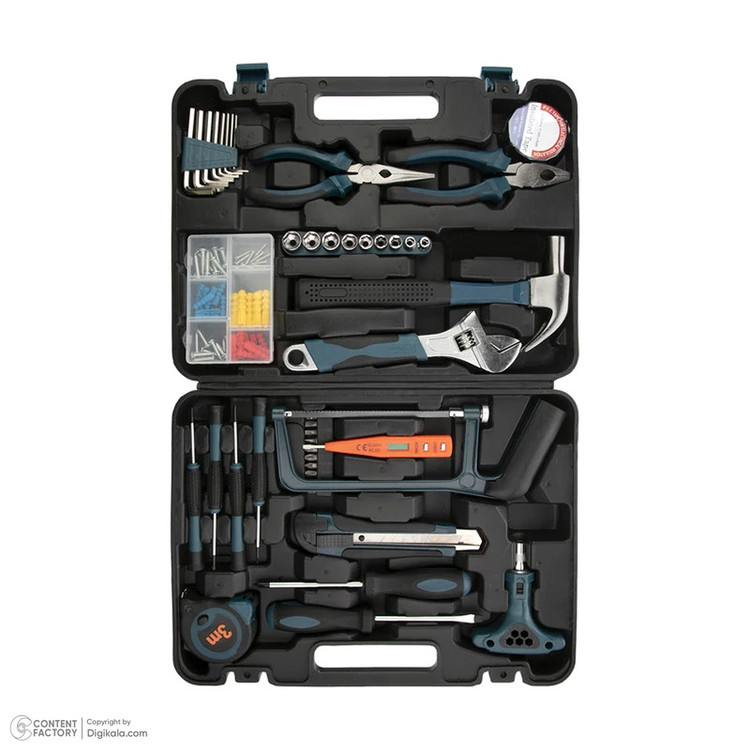 آچار آلن , آچار بکس , آچار فرانسه , اره افقیبر , انبر دم باریک , انبردست , پیچ , پیچ گوشتی , چکش , رولپلاک , سری بکس , فازمتر , کاتر , کیف ابزار , متر