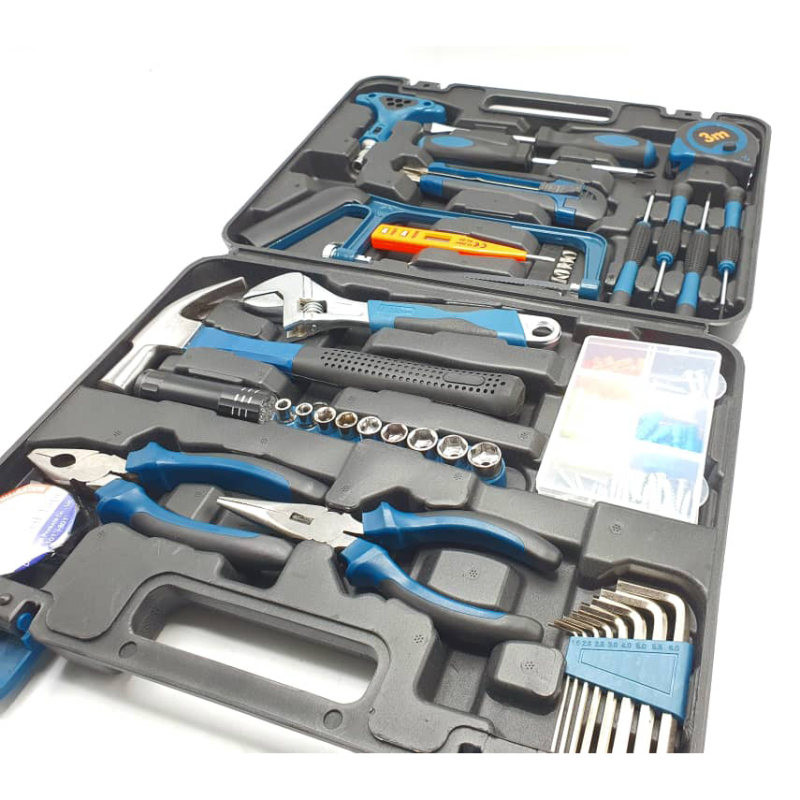 محتویات مجموعه: آچار آلن , آچار بکس , آچار فرانسه , اره افقیبر , انبر دم باریک , انبردست , پیچ , پیچ گوشتی , چراغ قوه , چکش , رولپلاک , سری بکس , سری پیچگوشتی , فازمتر